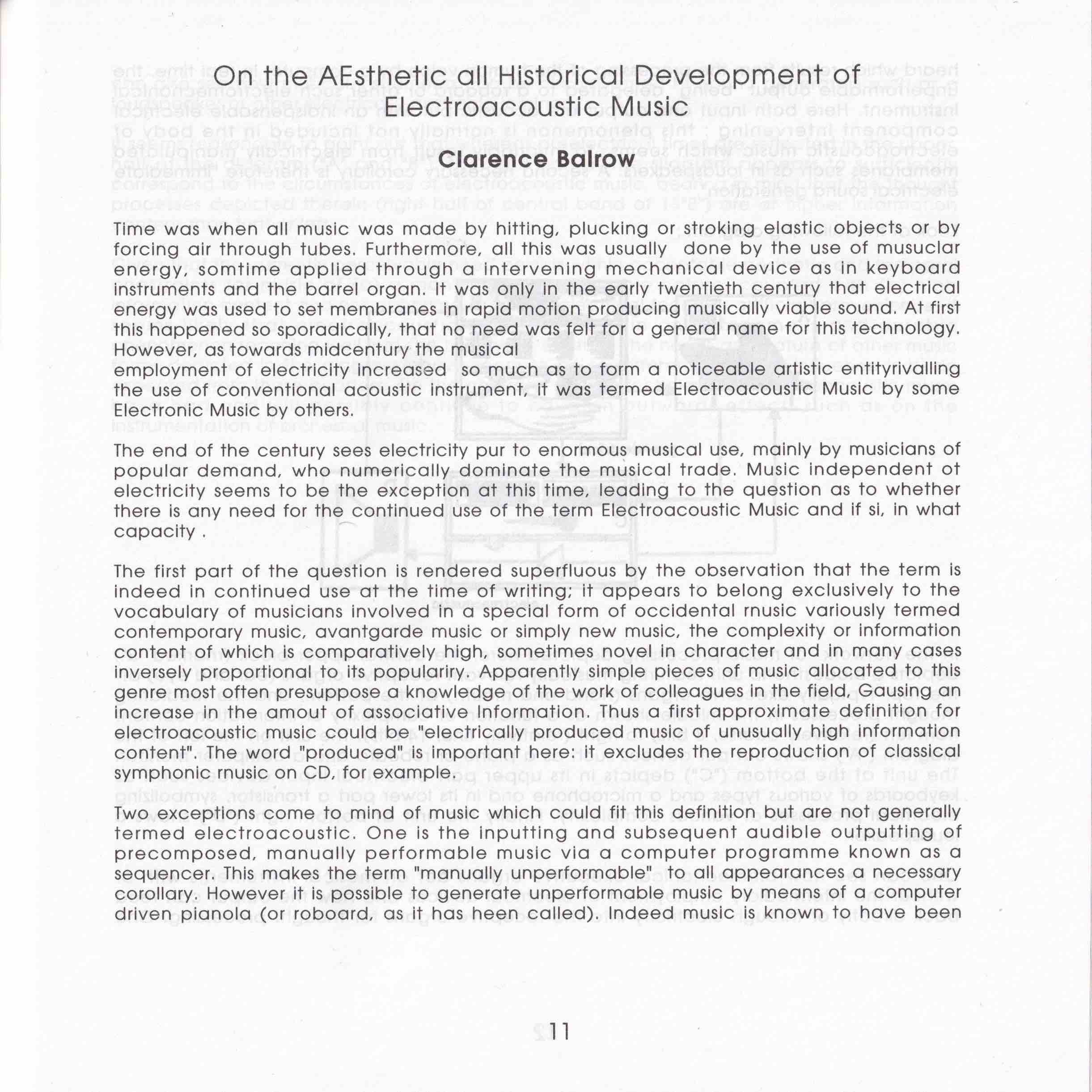 As towards midcentury the musical employment of electricity increased so much as to form a noticeable artistic entityrivalling the use of conventional acoustic instrument, it was termed Electroacoustic Music by some Electronic Music by others. (Clarence Barlow)