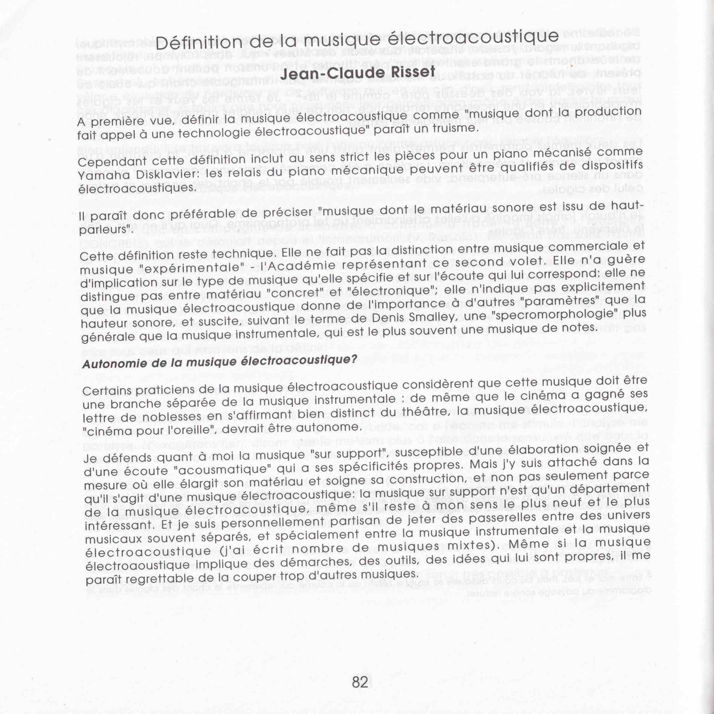 It may thus be preferable to refine our definition to, "music whose sounds are heard through loudspeakers." (Jean-Claude Risset)